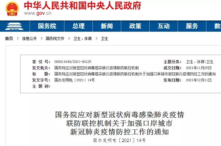 12月11日,國務(wù)院應(yīng)對(duì)新型冠狀病毒感染肺炎疫情聯(lián)防聯(lián)控機(jī)制印發(fā)《關(guān)于加強(qiáng)口岸城市新冠肺炎疫情防控工作的通知》,其中《通知》要求做好冷鏈?zhǔn)称穫鞑ワL(fēng)險(xiǎn)防控工作,各?。ㄗ灾螀^(qū)、直轄市)要抓緊組織本轄區(qū)口岸城市開展一次冷鏈相關(guān)企業(yè)風(fēng)險(xiǎn)排查,全面評(píng)估和整改各環(huán)節(jié)風(fēng)險(xiǎn)漏洞,并于2021年12月15日前將排查整改情況報(bào)送國務(wù)院聯(lián)防聯(lián)控機(jī)制綜合組。并要求離開陸地邊境口岸城市需持48小時(shí)核酸證明。