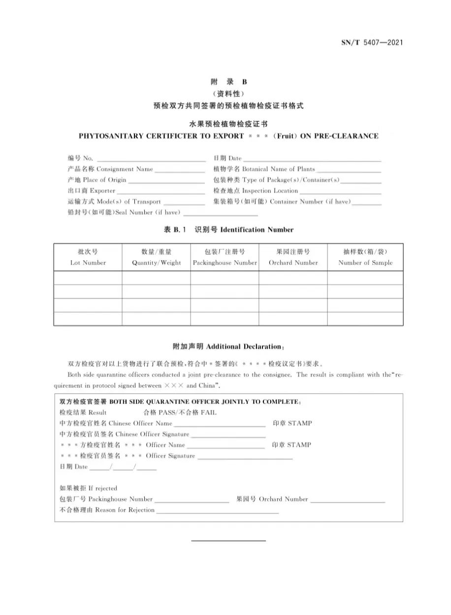 適用于向中國(guó)出口水果的產(chǎn)地和產(chǎn)品預(yù)檢。