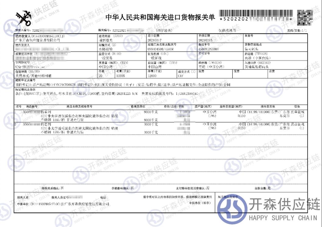 原文標(biāo)題:臺灣粘合劑進(jìn)口報(bào)關(guān)清關(guān)代理服務(wù)【經(jīng)典案例】