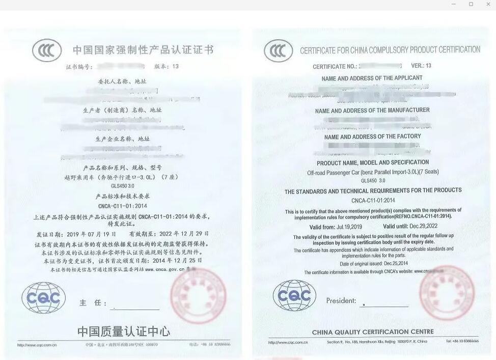 進口汽車入境前,生產(chǎn)商或其代理人應向國家認監(jiān)委提出申請并取得CCC認證,在口岸入境環(huán)節(jié),海關驗證車輛CCC認證證明材料。