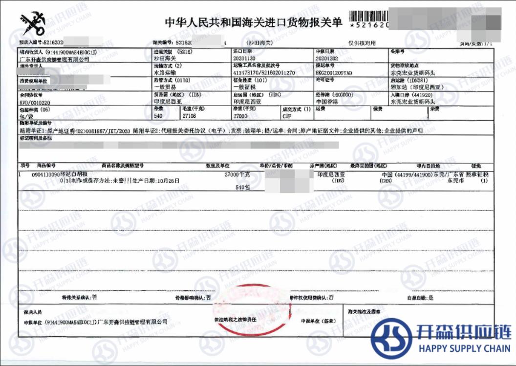 【導讀】您正在閱讀的是關于【進口案例】印度尼西亞白胡椒進口報關代理服務的內容,本文由開森農副產品進口報關代理小編整理編寫;