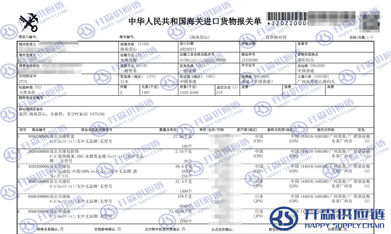 【本文結語】 上述就是高爾夫球桿用品進口報關清關代理服務【經典案例】的全部內容,希望能對您有所幫助,如有普貨進口報關案例上任何疑問及問題可隨時在線聯系我們或撥打 18002611553,開森供應鏈擁有豐富的普貨進口報關案例操作經驗及案例,10余年進口經驗為您所用,各類進口疑難都能為您一一解答及協助快速處理解決!