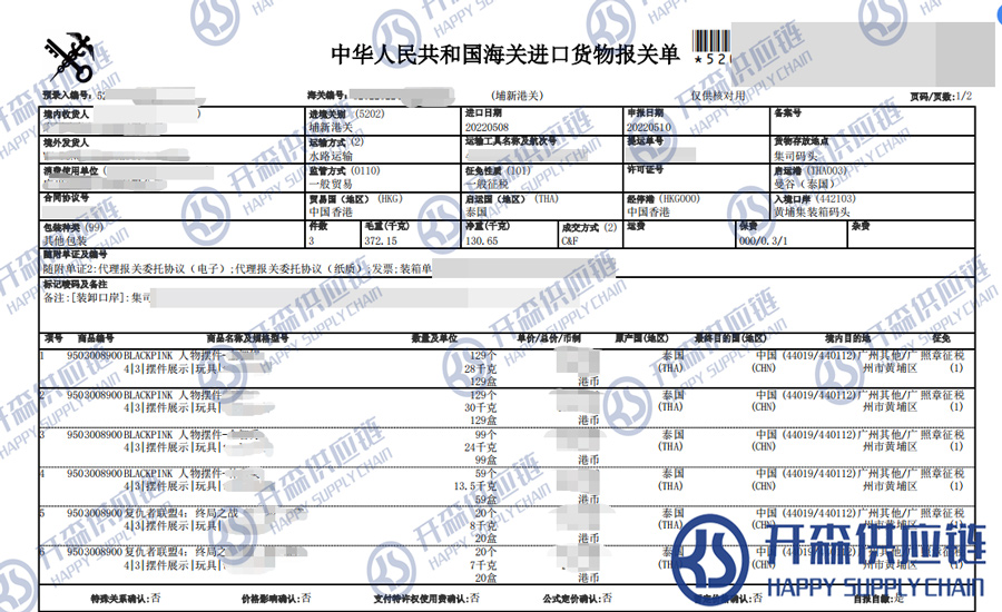 進口港口:黃埔集裝箱碼頭;