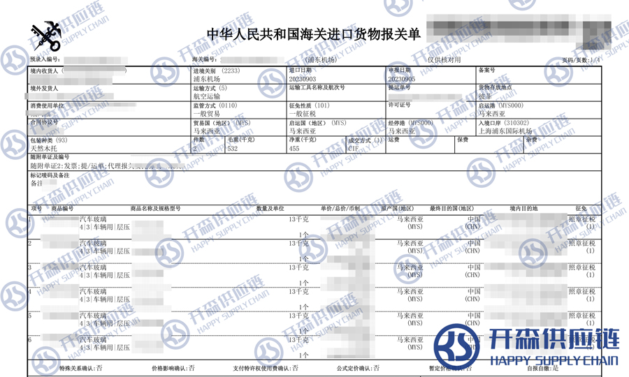 一、馬來西亞汽車玻璃進(jìn)口報關(guān)代理案例詳情