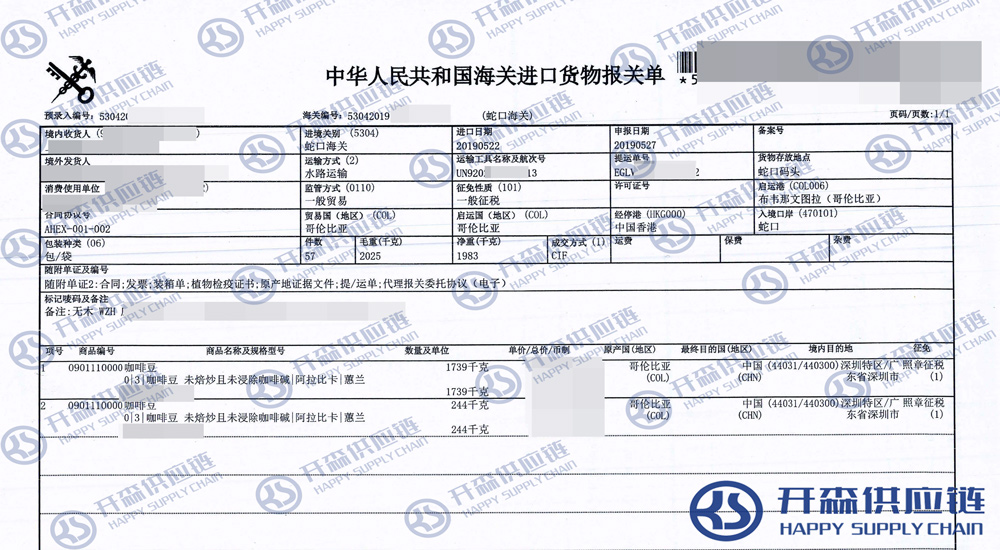 一、哥倫比亞咖啡豆進口報關(guān)代理案例詳情